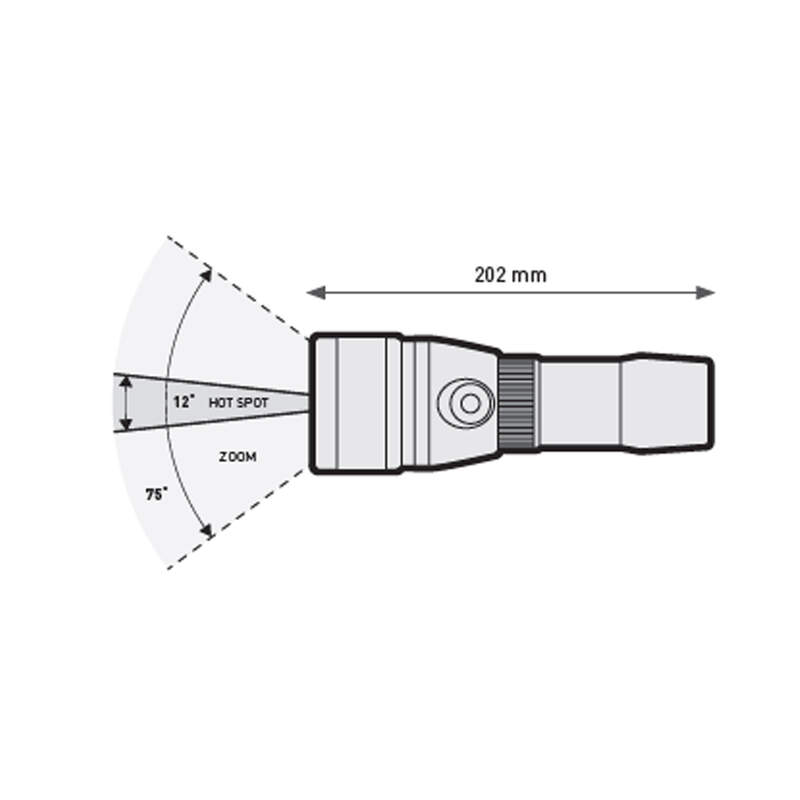 · Magneticky nastaviteľný lúč – plynulé prepínanie medzi úzkym „Hot Spot“ (cca 12°) a širokým „Corona“ (cca 75°) pre presné osvetlenie
