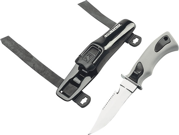 Scubapro K-5 je stredne veľký potápačský nôž navrhnutý tak, aby zvládol široké spektrum situácií počas ponoru. Jeho kvalitná 11 cm dlhá čepeľ z nehrdzavejúcej ocele ponúka kombináciu hladkej a zúbkovanej reznej hrany spolu s praktickým rezákom na šnúry, vďaka čomu si poradí s lanami, rybárskymi vlascami či popruhmi výstroja. Ergonomická rukoväť je tvarovaná tak, aby poskytovala pevný a bezpečný úchop aj v rukaviciach. Nôž je uložený v pevnom puzdre s bezpečnostným zámkom, ktoré drží čepeľ spoľahlivo na mieste a zároveň umožňuje rýchle vytiahnutie jednou rukou. Súčasťou balenia sú aj dva rýchlonastaviteľné popruhy s prackami, vďaka ktorým môžete nôž jednoducho pripevniť na lýtko, stehno alebo predlaktie. Vďaka svojej odolnosti, praktickému dizajnu a univerzálnosti je model K-5 ideálnou voľbou pre rekreačných aj pokročilých potápačov.