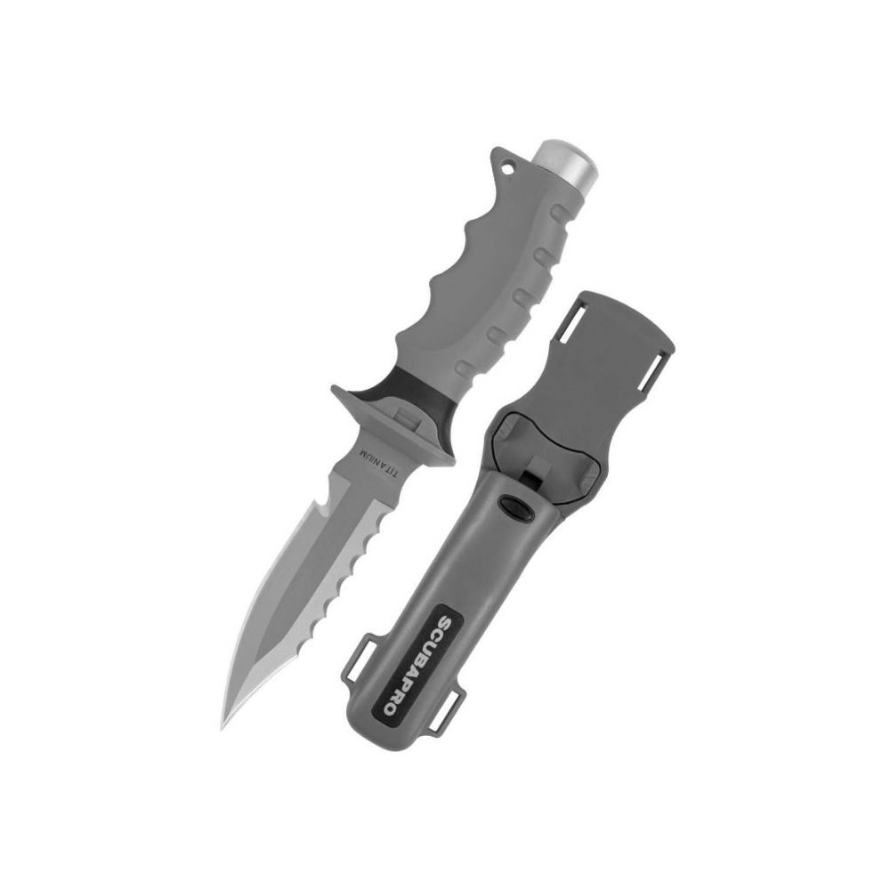 Scubapro SK-T je kompaktný a mimoriadne ľahký nôž s čepeľou vyrobenou z kvalitného titánu, ktorý ponúka výnimočnú odolnosť voči slanej vode a korózii. Vďaka titánovej konštrukcii si zachováva vysokú pevnosť pri výrazne nižšej hmotnosti v porovnaní s oceľovými nožmi. Je ideálny ako hlavný alebo záložný bezpečnostný nôž pre rekreačných aj technických potápačov. Čepeľ je navrhnutá s dôrazom na univerzálnosť a zahŕňa hladkú aj zúbkovanú reznú hranu, čo umožňuje efektívne rezanie aj pílenie rôznych materiálov pod vodou. Súčasťou je aj praktický rezák na šnúry a vlasce, ktorý pomáha v prípade zamotania počas ponoru. Ergonomicky tvarovaná rukoväť zabezpečuje pevné a bezpečné uchopenie aj v rukaviciach. Na konci rukoväte sa nachádza integrované kladivko, ktoré možno využiť na signalizáciu alebo ľahké údery pri práci pod vodou. Nôž je uložený v odolnom puzdre s bezpečnostným zámkom, ktoré umožňuje rýchle a jednoduché vybratie jednou rukou. Súčasťou balenia sú upevňovacie popruhy, vďaka ktorým je možné nôž pohodlne pripevniť na výstroj alebo popruhy.