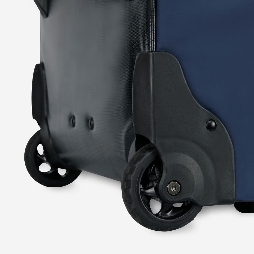Aqualung Explorer 120L je praktická cestovná taška na kolieskach, vytvorená ako spoľahlivé riešenie na transport potápačskej výbavy pri cestovaní za potápaním. Vďaka veľkému objemu, odolným materiálom a premyslenému vnútornému usporiadaniu ponúka dostatok priestoru nielen na kompletnú potápačskú výstroj, ale aj na osobné veci. Taška je vyrobená z pevného vodoodpudivého PVC materiálu, ktorý chráni obsah pred vlhkosťou a zároveň si zachováva kvalitný vzhľad aj pri častom používaní. Antikorózny zips zvyšuje odolnosť v prostredí so slanou vodou. Vnútorné priehradky a samostatné vrecko na plutvy pomáhajú udržať výstroj prehľadne usporiadanú a oddeliť potápačské vybavenie od osobných vecí. Vďaka teleskopickej rukoväti a robustným kolieskam sa kufor ľahko presúva aj na dlhších presunoch napríklad na letiskách. Rozmery zároveň zodpovedajú požiadavkám na podpalubnú batožinu, čo pomáha vyhnúť sa dodatočným poplatkom za nadrozmernú batožinu.