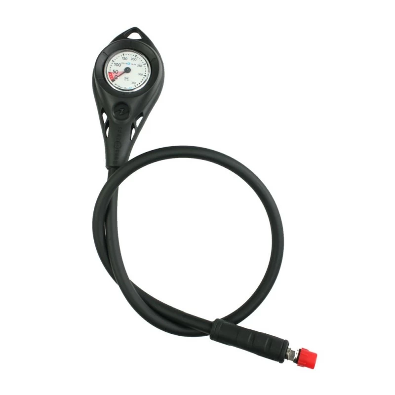 Aqua Lung MANO AL50 je veľmi presný analógový tlakomer vložený do štýlového ochranného puzdra. Spoľahlivý vnútorný Bourdon merací mechanizmus s prevodovým systémom zabezpečuje veľmi presné meranie tlaku plynu v potápačskej fľaši. Údaje o tlaku plynu v tlakovej nádobe sú zobrazené na ľahko čitateľnej stupnici číselníka s veľkými čiernymi číslicami na pozadí luminiscenčného pozadia v rozsahu 0 – 360 bar. Puzdro tlakomera je vyrobené z poniklovanej mosadze a je doplnené špeciálne navrhnutým krytom z odolného materiálu, ktorý chráni tlakomer pred poškodením. Priezor ciferníku je vyrobený z vysoko odolného materiálu (netrieštivý polykarbonát). Na zadnej strane tlakomera je pretlaková kapsula, ktorá bráni explózii priezoru v prípade zlyhania vnútorného mechanizmu.